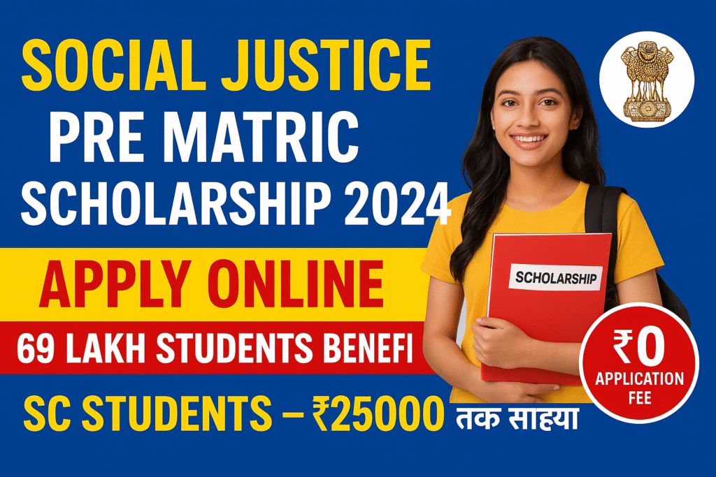 🧑🏫 Social Justice Pre Matric Scholarship Online Form 2024 – Apply Now | 69 Lakh Students Scholarship