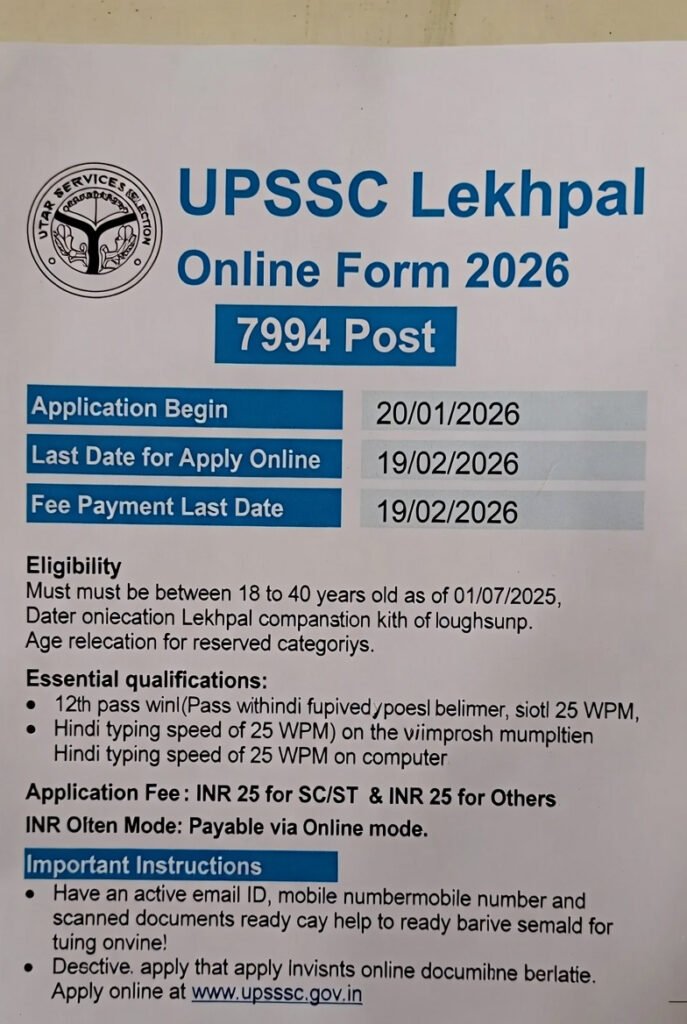 UPSSSC Lekhpal Online Form 2026 – Apply for 7994 Post